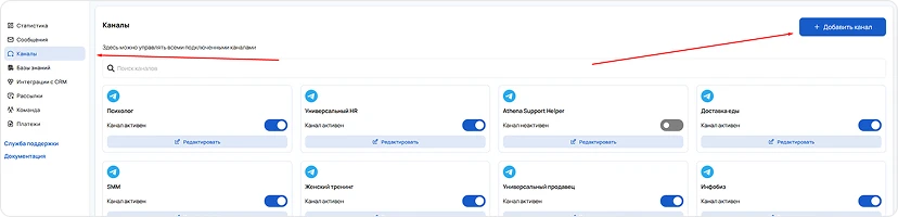 - Переходим в раздел каналов -> Добавить канал.