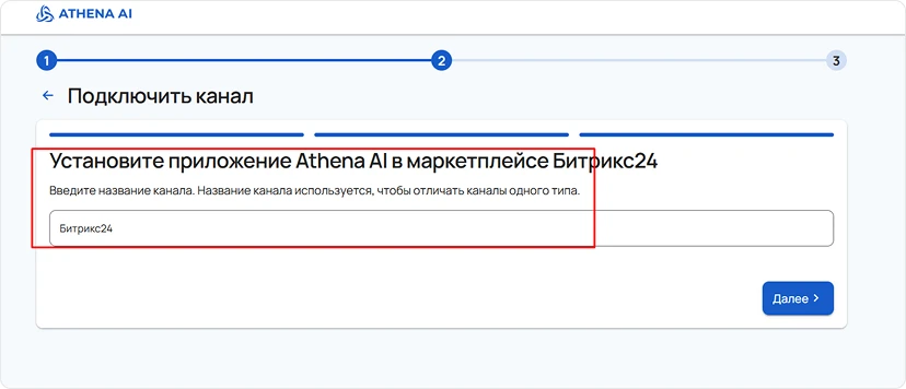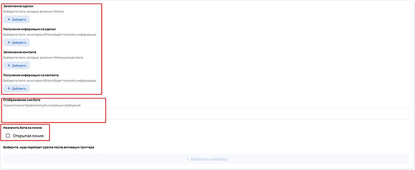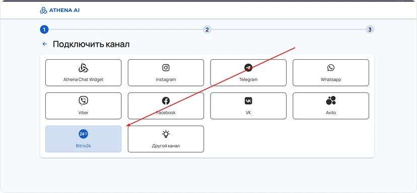 На данном этапе необходимо задать параметры для работы Битрикс24 и Афины ИИ: