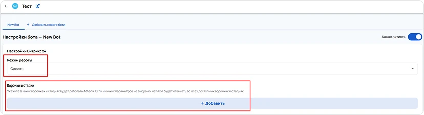 * Если не указали воронки и стадии, бот будет работать на всех доступных стадиях, и воронках по умолчанию.