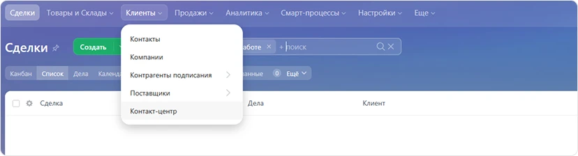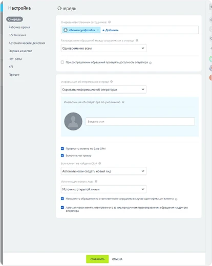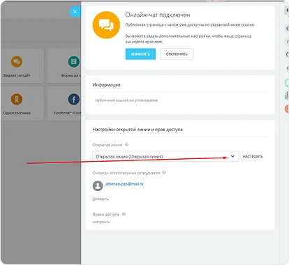 - Переходим в контакт центр для создания открытой линии и подключения Афины ИИ для работы в ней.