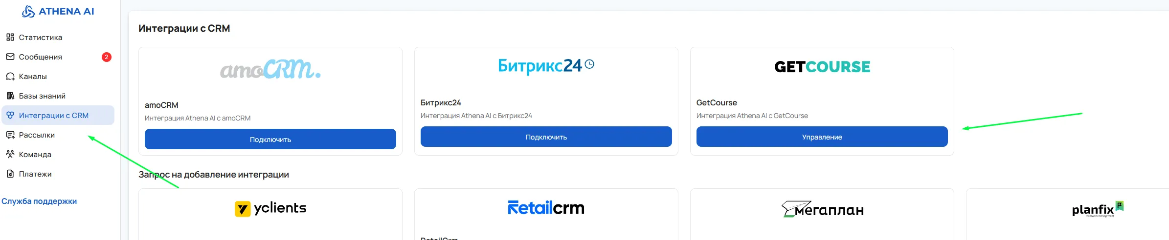 Стартовый номер заказа - начиная с этого номера будут создаваться заказы в GetCourse от имени Афины. Важно, чтобы стартовый номер был большим числом, чтобы новые заказы не пересекались с существующими. (По умолчанию от 1000)