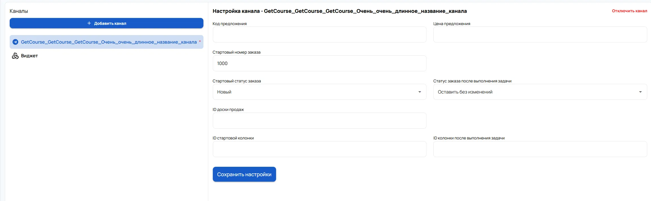 Перейти в доску продаж -> скопировать id -> вставить в поле ID доски продаж в настройках интеграции
